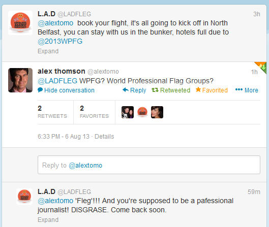 Claims such as ‘there’s a lot of anger in are (sic) community’ and ‘are (sic) British culture is being chipped away’ have been made a lot in recent months. These and similar such claims are made in an apparent effort to justify loyalist violence. To argue the contrary with the average loyalist (or indeed some unionist politicians) would seem to be a pointless exercise. There is no discussion to be had with someone blind to the truth and to simple, hard fact.